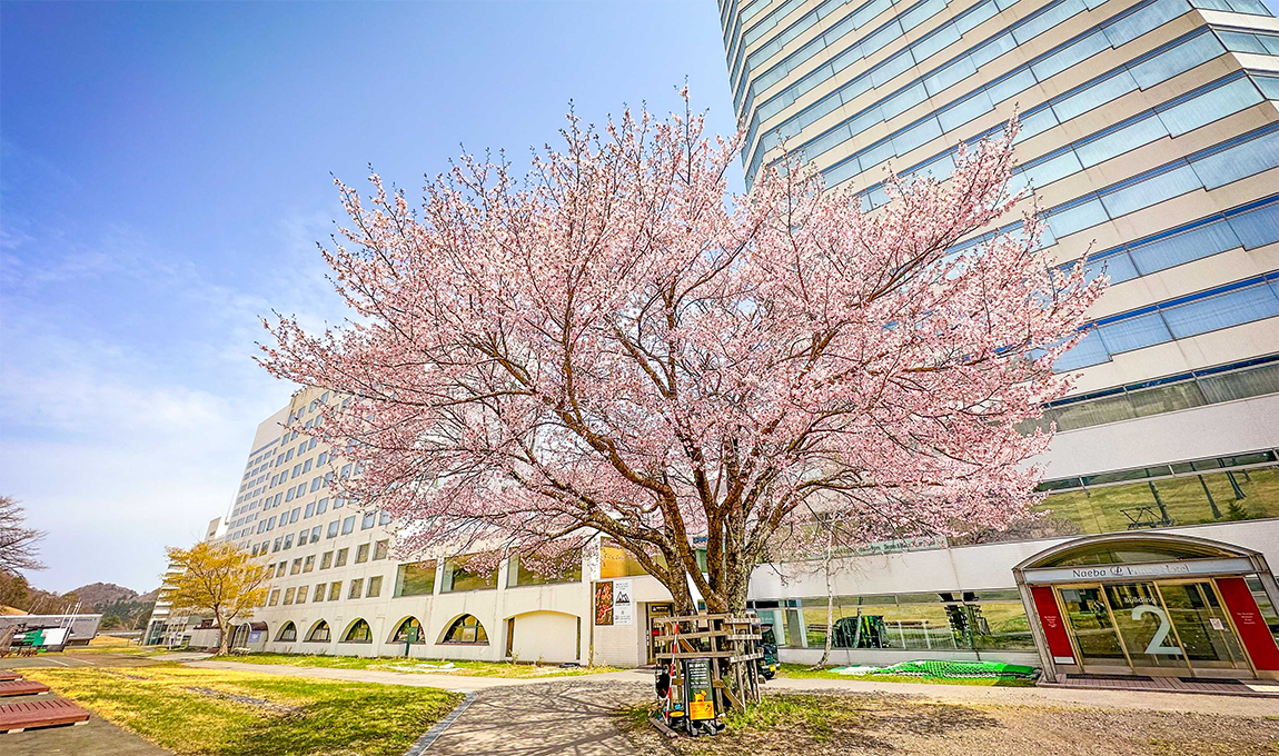 苗場のシンボル”しなの木”の前で、自然の風に当たりながら、朝食を優雅に食べてみませんか。